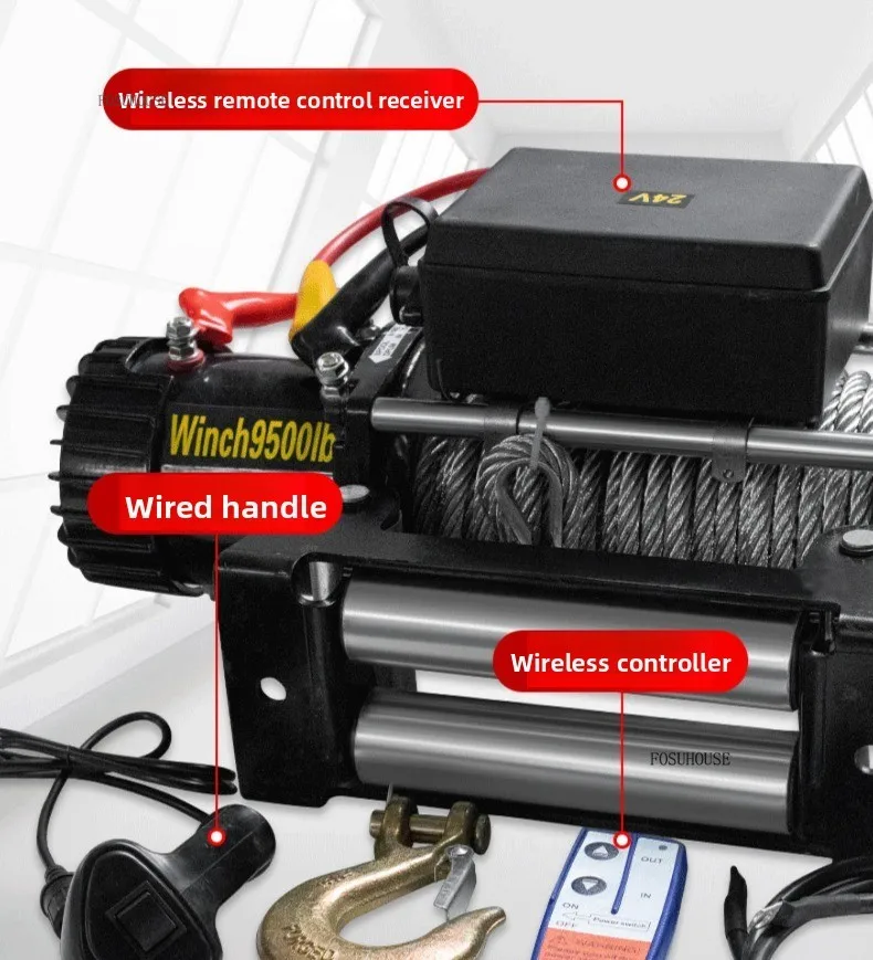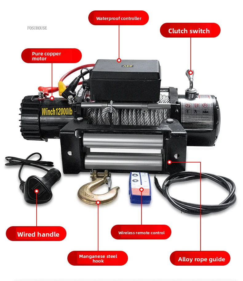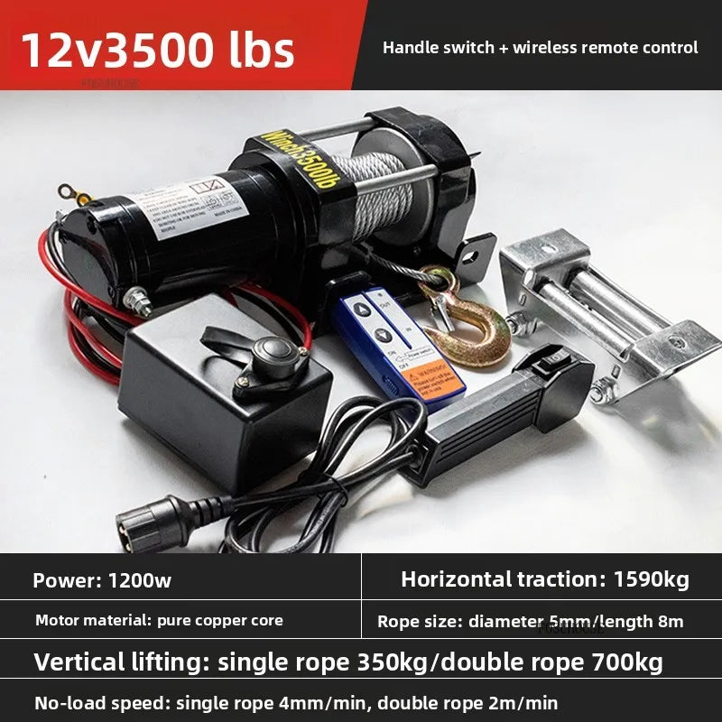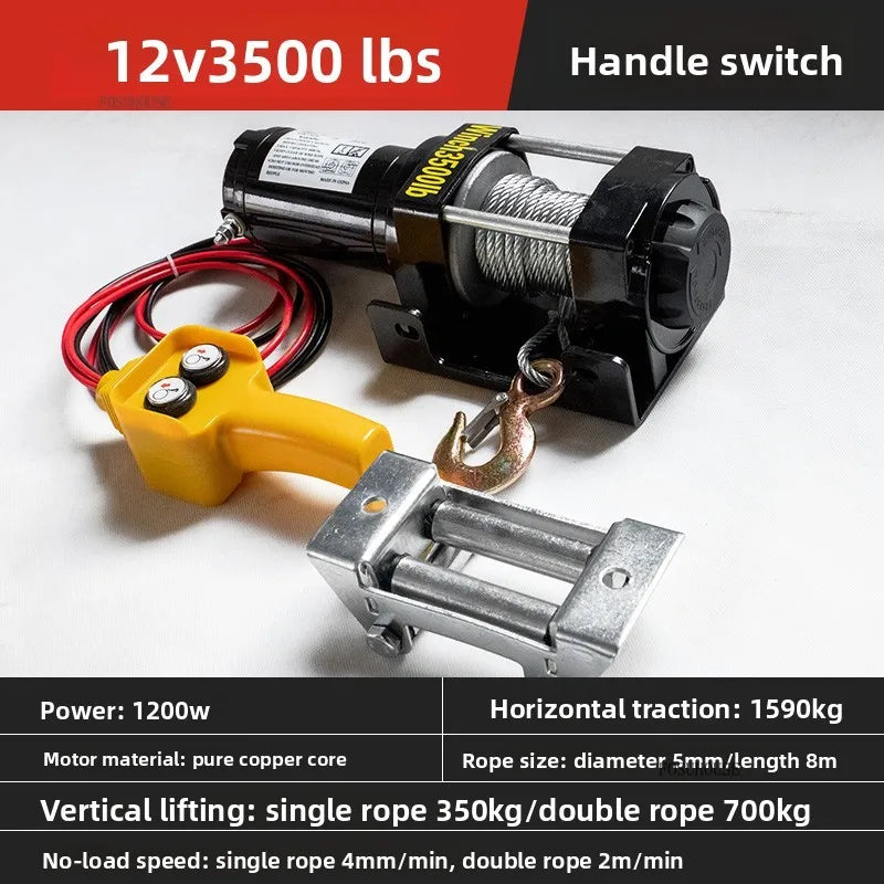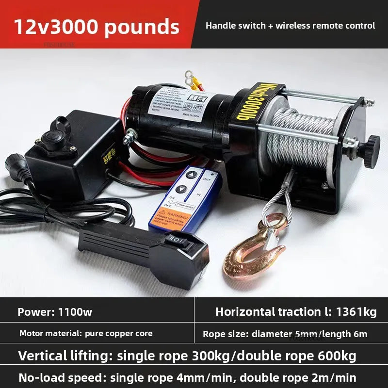 Electric Winch 12V/24V for ATV/UTV – Off-Road Self-Rescue, Compact Hoist, 680kg Pull